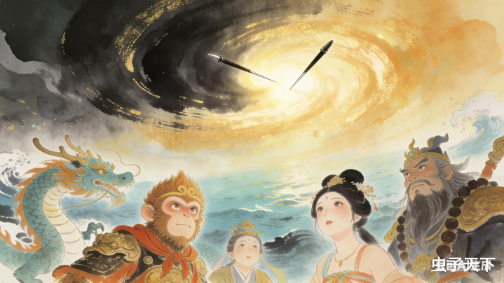 孙悟空捧腹大笑:“两个糊涂虫!定海神针分阴阳,相济才智平衡。暗针属阴,离开东海超七日,四海皆将遭劫!到时海水倒灌,万物遭灾!”