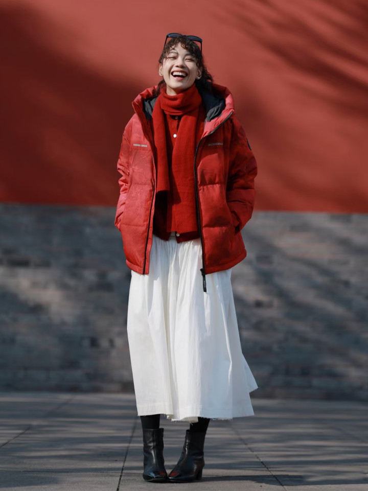 红色波司登羽绒服混搭白色裙子,通过作风以及热情的昭着对比,丰富造型档次开云体育官方网站,衬肤显白,统共东谈主一看就很有生命力。