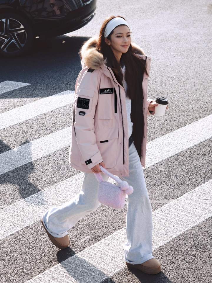 羽绒服穿搭中顺应增添一些开通元素,不错中庸造型作风,营造称心粉碎感。比如平直搭配开通裤,或是率领开通发带等方式,皆显得非常当然。