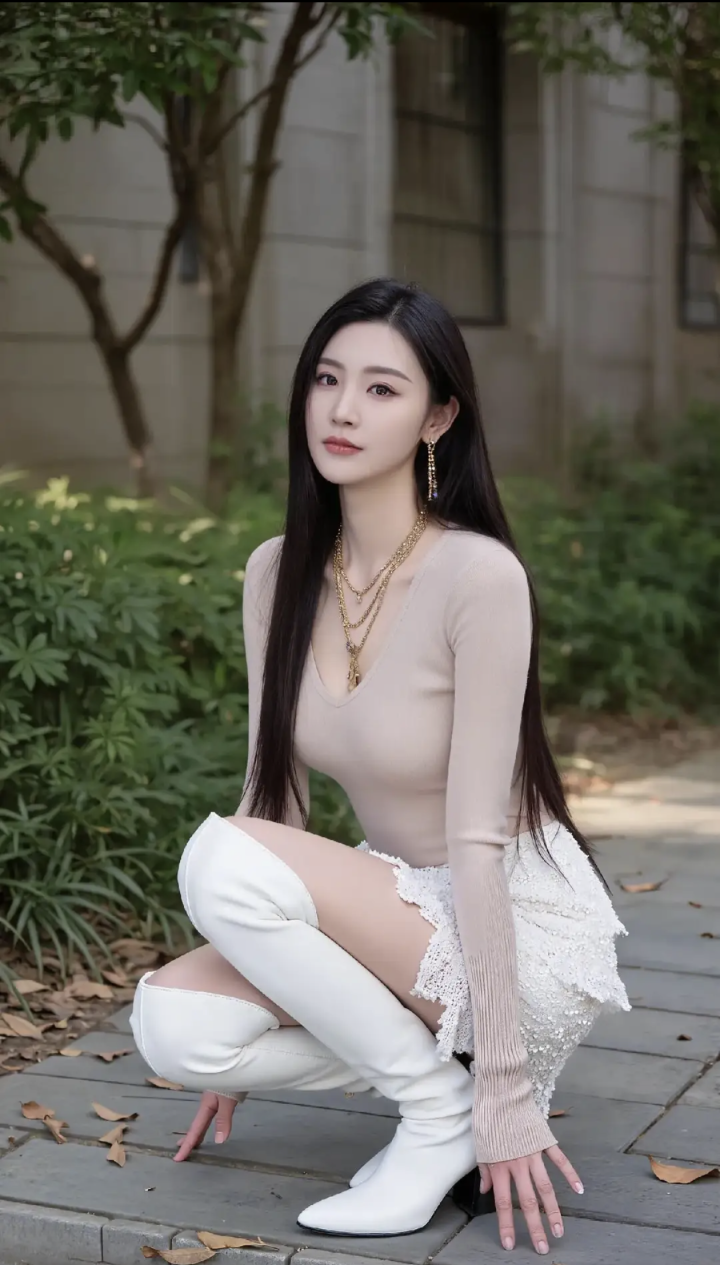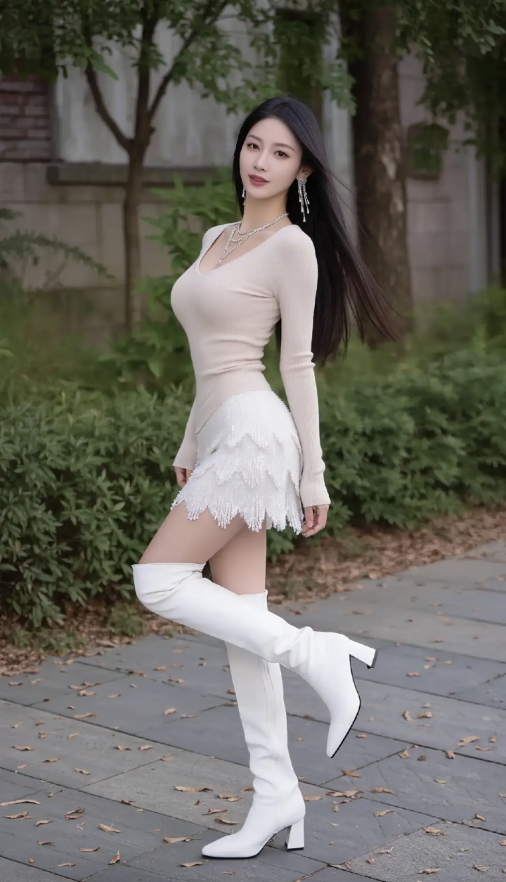浅米色V领诚恳衫搭配白色流苏短裙与同色长筒靴,配色柔柔簇新。流苏细节增添灵动感,长靴则注入前卫气场开云sports,举座为甜好意思与自便兼具的王人市清闲风。
