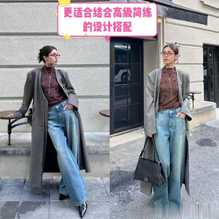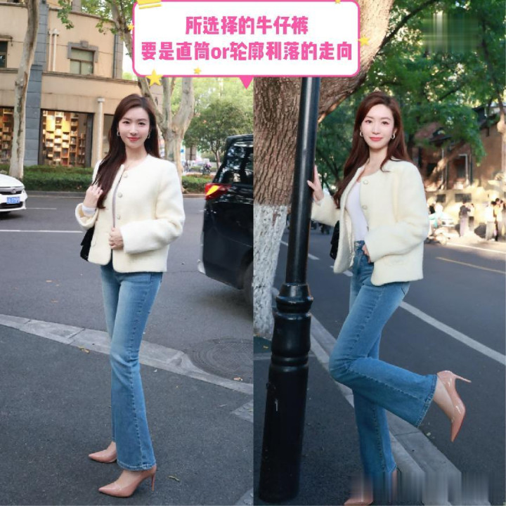 而且牛仔裤也提议大家不错聘任阔腿的模式,而况线条的走向最佳是属于直筒的预备,或者大要体现出相配显豁利落感的预备走向。与你所聘任的低跟鞋,高跟鞋,在视觉上是大要将体态的透澈上风给体现出来的,举例拉长了咱们统统这个词下半部分的遵循,以及不错显得愈加显瘦一些。