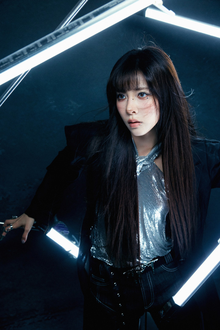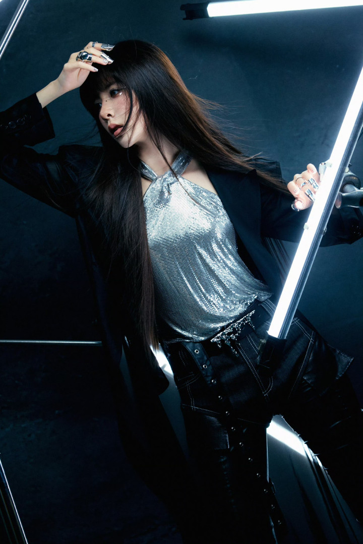金属腰带与铆钉长裤碰撞出浓烈的街头格调,凌乱的长发与凌厉的目光宣告着她的酷飒试验,在暗夜里掀翻一场属于我方的风暴。