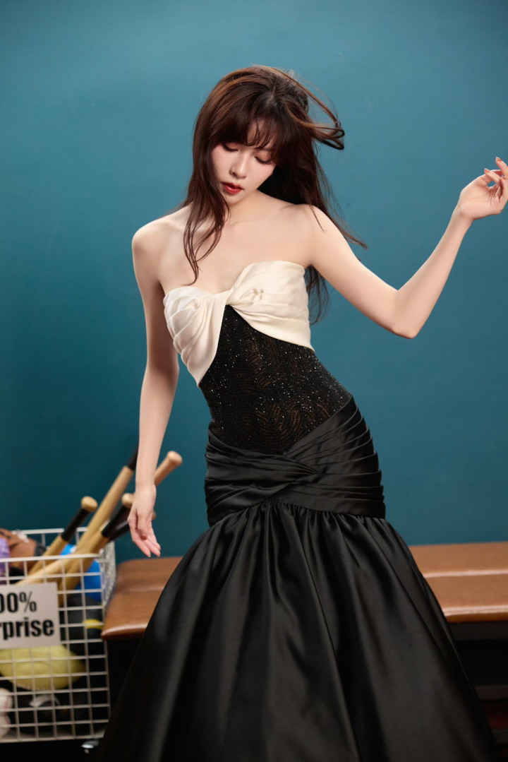 口角撞色抹胸投降勾画出宋妍霏的艰深弧线,胸前的米白色蝴蝶结在醒意见玄色钻面布料上kaiyun sports,宛如暗夜中开出的谦恭花朵。