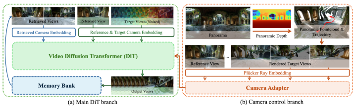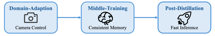 这一步的关键改进在于“精确的相机端正+细粒度视觉细节保持+空间一致性挂念机制”,这一套经过不错确保壮盛成的区域与已有区域在几何和视觉上完好衔尾,不会“穿帮”。通过挂念力机制的联想以及体系化的中间考试和后考试,团队打造了当今业界最强的新视角生成(NVS)模子HY-WorldStereo。生成画靠近输入相机的精确奴才,且多条运镜的生成终止保持空间一致不会有破裂;通事后考试算法的联想,使得保持快速生成的同期画面质地不会衰减。