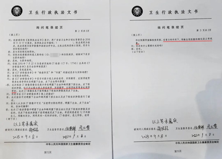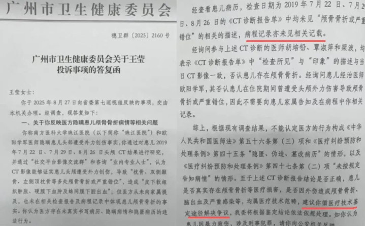2025年8月,配偶俩向广州市卫健委响应情况。随后的访问中,医师称,3次查验影像及线路均未教导有颅骨骨折和皮下出血,只教导有硬膜下出血和蛛网膜下腔出血,患儿在入院时代未遭遇头颅外力伤害。其中,珠江病院影像科医师胡培铅(2016年启动从业)暗意:“患者是重生儿,颅缝未闭合,颅骨具有一定的浮动性,CT查验时,患儿伏卧,枕骨和左侧颞骨战斗查验床板,在重力作用下,颅缝出现隐微的错位是广博表象,因而不及以会诊骨折。”