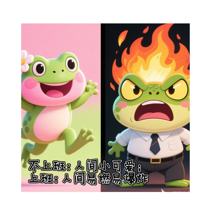 5. 不上班:东谈主间小可人;上班:东谈主间易燃易爆炸。
