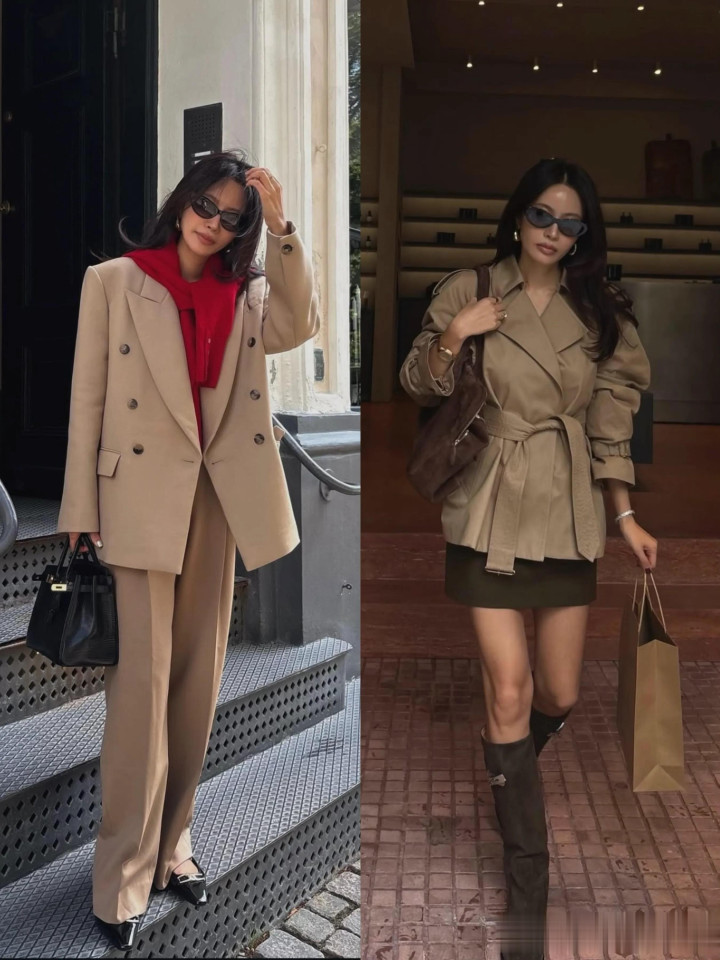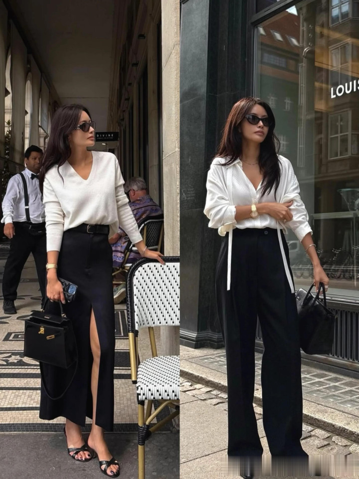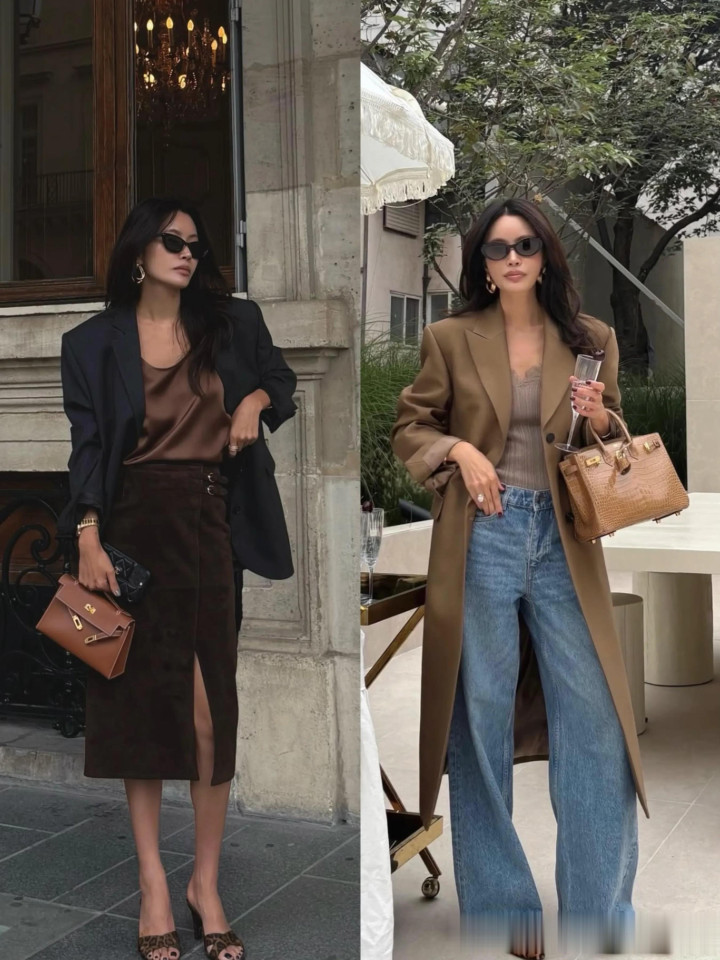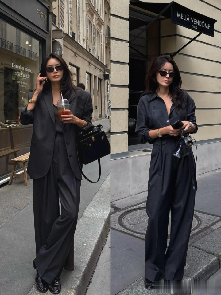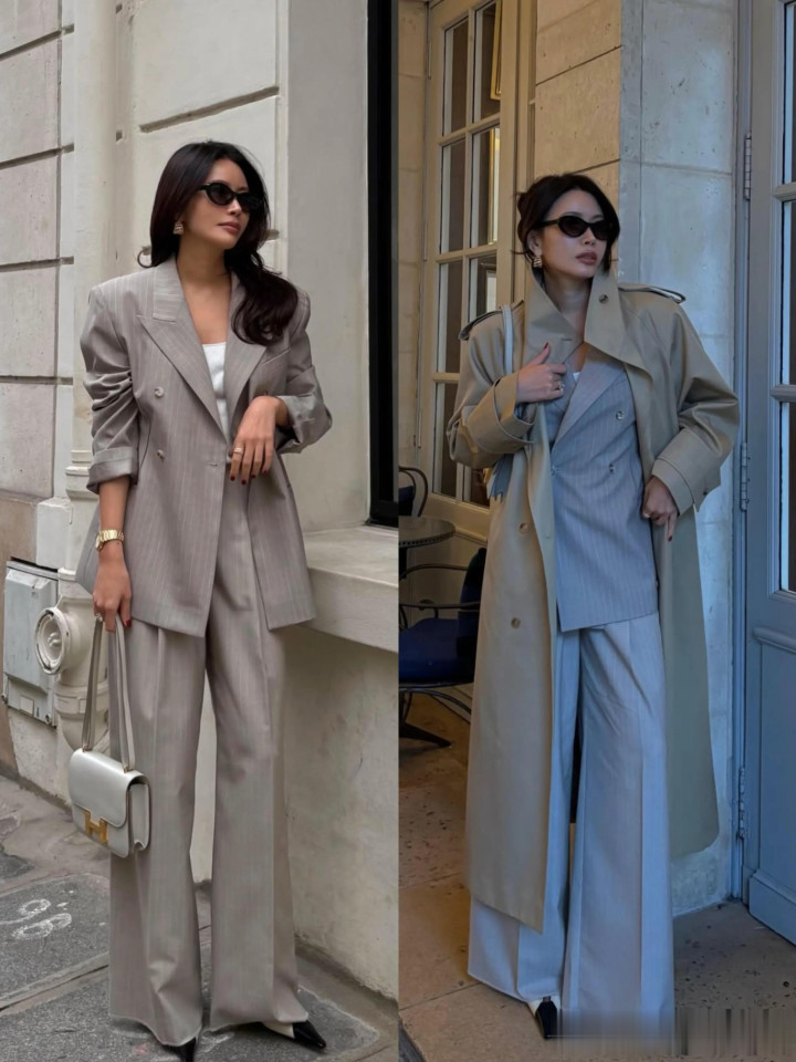 • 选垂感好的基础款(西装、阔腿裤、真诚衫)
