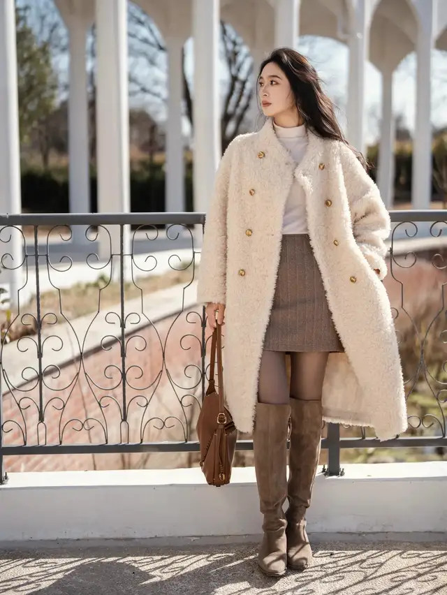 诚然过问了春季,然则早上和晚上温差如故比拟大的,罕见是太阳落山之后,俄顷就嗅觉气温下落,这技艺我们如实要加上一件皮草外衣会更御寒,内部成功用一件半高领的白色毛衣来组合就够。