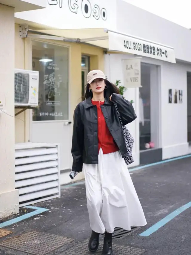 是曲搭配最为经典,结巴易出错,我们不错成功选定带有酷感的玄色皮衣外衣,内搭白色的连衣裙,变成外短内长的搭配,更容易擢升腰线,我们穿搭的技艺,还不错在腰间位置加上一款腰带,勒住小蛮腰,变成高腰线。