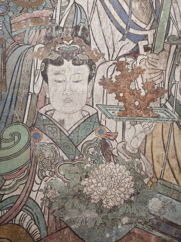 在中国传统中,活东说念主穿右衽,尸骸或神灵常着左衽。左衽在古代不仅用于外族衣饰,在玄门、释教图像以及至人题材绘制中,也常被用来象征“非东说念主间”的存在。比如敦煌壁画中的飞天、水月不雅音,不少都继承左衽;宋代以后的仙真、鬼神画像,左衽更是常见。