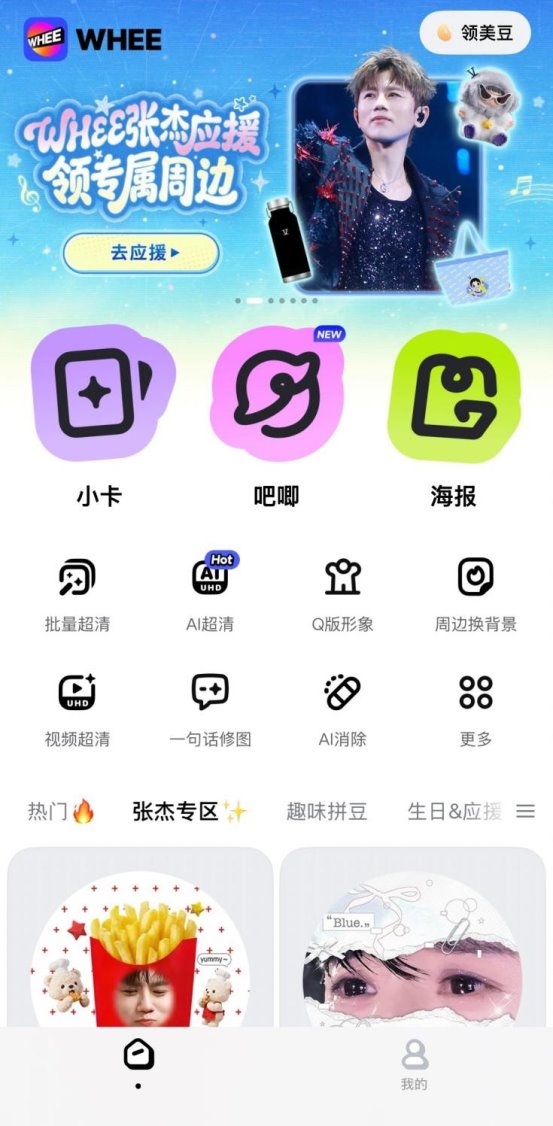 据官方信息知晓,WHEE此前已推出“物料剪辑器”功能,秘密小卡、吧唧、手幅、海报等全品类应援物料创作场景,以丰富的预设模板和方便快捷的操作,大幅缩短应援物料缱绻门槛。