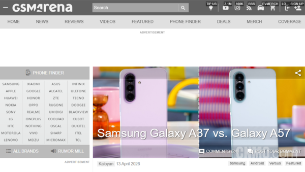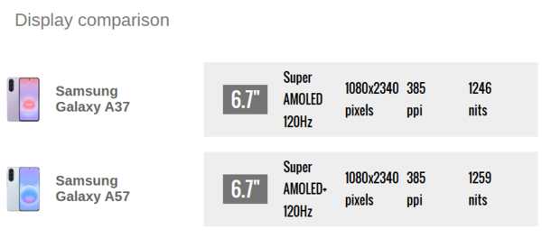 [CNMO科技音尘]近日,有外媒将定位左近的三星A57与A37,进行了注释对比。外媒指出,三星A57与A37在中枢规格上存在多项雷同之处。它们均配备6.7英寸屏幕与5000mAh电板,复旧45W有线快充等。