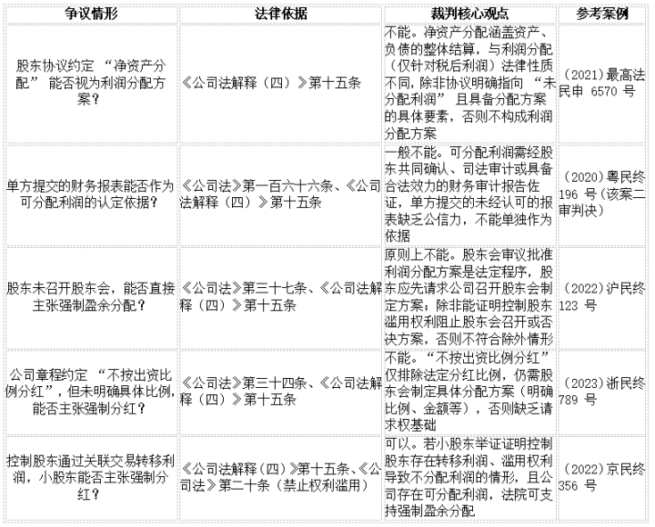 在(2021)最高法民申6570号案中,廖广宁见识2015年1月15日的契约组成利润分派决策,但法院认定该契约第六条商定“廖广宁取得公司净钞票的75%”,内容是对公司净钞票的结算分派,而非对“利润”的分派商定,且未明确利润金额、支付时辰等具体内容,不相宜“具体分派决策”的中枢特征,故不成看成见识分成的依据。