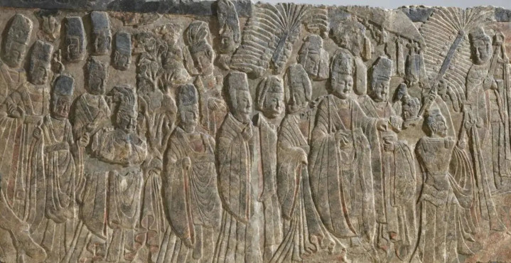 北魏《孝文帝礼佛图》,龙门石窟的绝代之作。1930年代被好意思国东说念主通同古董商盗凿,切割成19块,头部与体格严重错位,经日本古董商山中定次郎转手卖给无数会,如今石窟只剩疲于逃命的残壁。