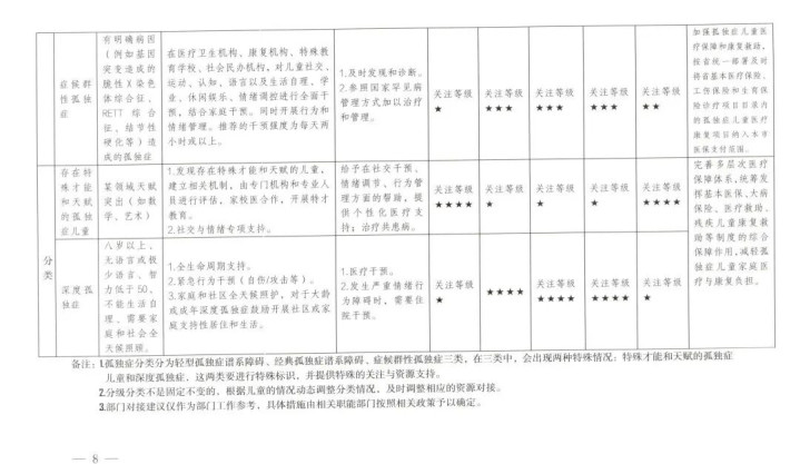 决策将自闭症分为三类:轻型、经典型、症候群型。同期相当关注两个群体:深度自闭症、双重特需自闭症(有独特才能的孩子)。