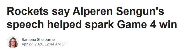 北京期间4月27日,火箭115-96打败湖东说念主,将总比分扳成1-3,幸免了被横扫的结局。ESPN揭秘火箭本场大捷,十分提到了申京赛前的讲话,饱读励了火箭全队的士气。