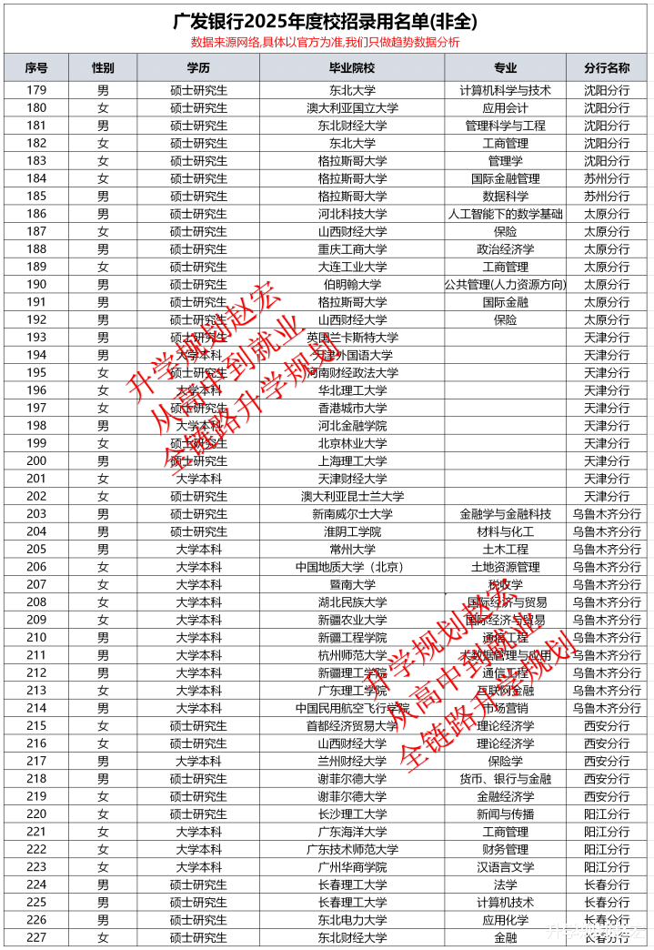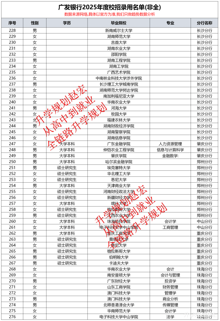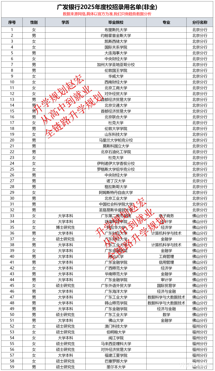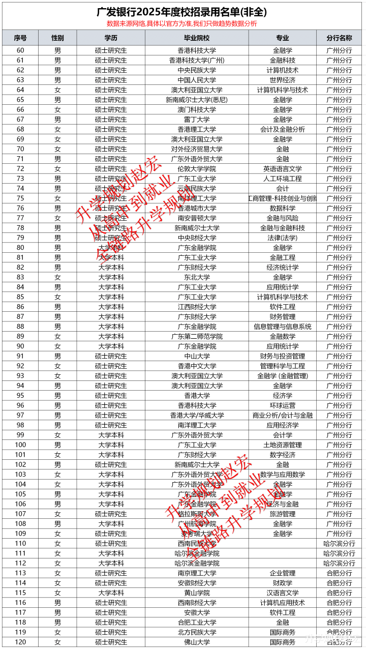 经济金融一直争议很大,为啥,因为内行皆在说,莫得资源就不要选。可实质上简直是吗?有一些岗亭概况是,有些岗亭概况不是,雷同学经济金融也不是就独一银行,雷同进银行也不是独还是济金融才不错。就银行来说,我们更新过好多,比如中信银行、诞生银行、中国农业银行、邮政储蓄,各地的买卖银行,中国东说念主民银行,米兰中国农业发展银行等等。除了银行不一样外,还有各大银行下属的各个分行支行也不一样。其他的到主页巡逻,详备名单也不错进我们的央国企体制内办事学问库。本文我们来望望广发银行2025年度校招委用名单,2026年的过段时间更新,皆会放到学问库。
