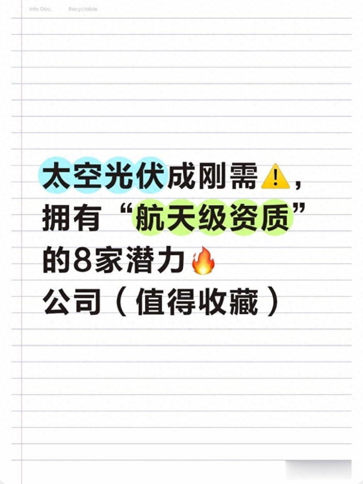 国内已有8家企业凭借时间冲破,拿到天外光伏入场券,隐蔽电板、组件、衬底材料、封装薄膜、镀膜等全产业链才略,批量供货国表里生意航天技俩,成为天外时期的中枢受益方。底下详备梳理这8家企业的中枢业务、时间上风、落地场景和成长逻辑,一次性解说晰。