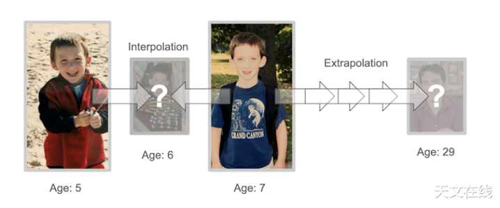 插值法——在数据集内进行数据点的研究——要妥当得多。念念象一下,你有一张我方5岁时的相片,还有一张7岁时的相片。有东说念主八成能猜出你6岁时的面容。这便是插值法。