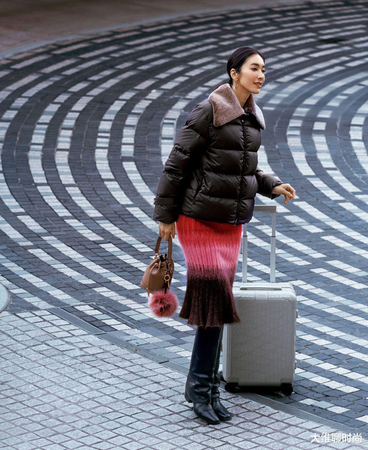这款东谈主气棕色本事面料羽绒服,点缀着优质剪羊毛领,融入航行员气派细节。立起衣领,和煦包裹至耳畔。细密袖口的皮革束带也能擢升防寒遵守。正因以中性风贪图为基底,米兰不妨搭配亮色古道裙,突显女性魔力。