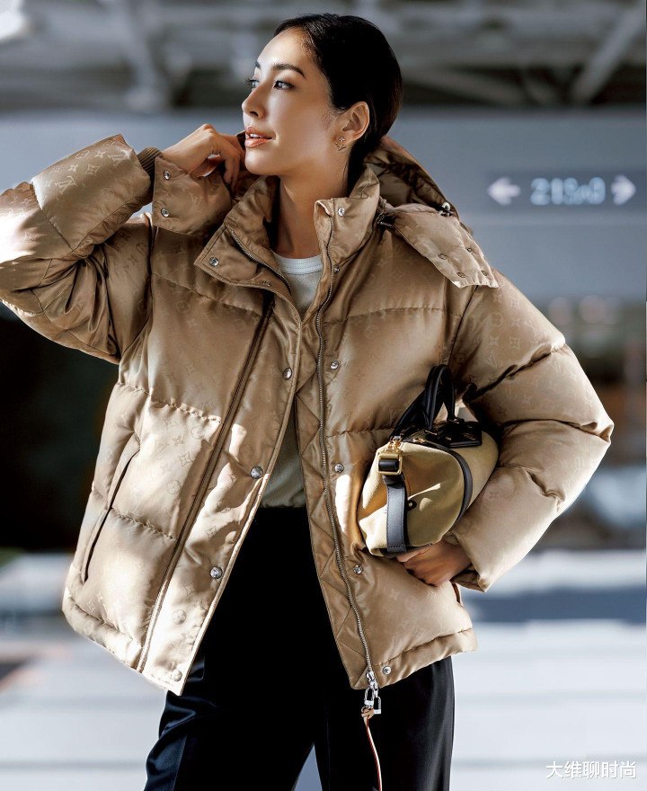 将经典的羽绒服以亮堂和煦的色长入精通色泽的面料,演绎出本季的前锋感。