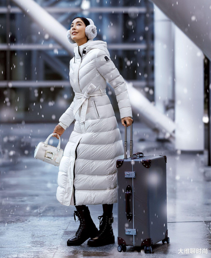 在极寒的城市型住宿或欧洲高等滑雪度假村,聘任这款兼具防水透气性、轻量且修身的长款羽绒服,即使在严寒中也能保抓蓬松感。白色的A字廓形,能为你打造出充满优雅气质的冬日旅行造型。