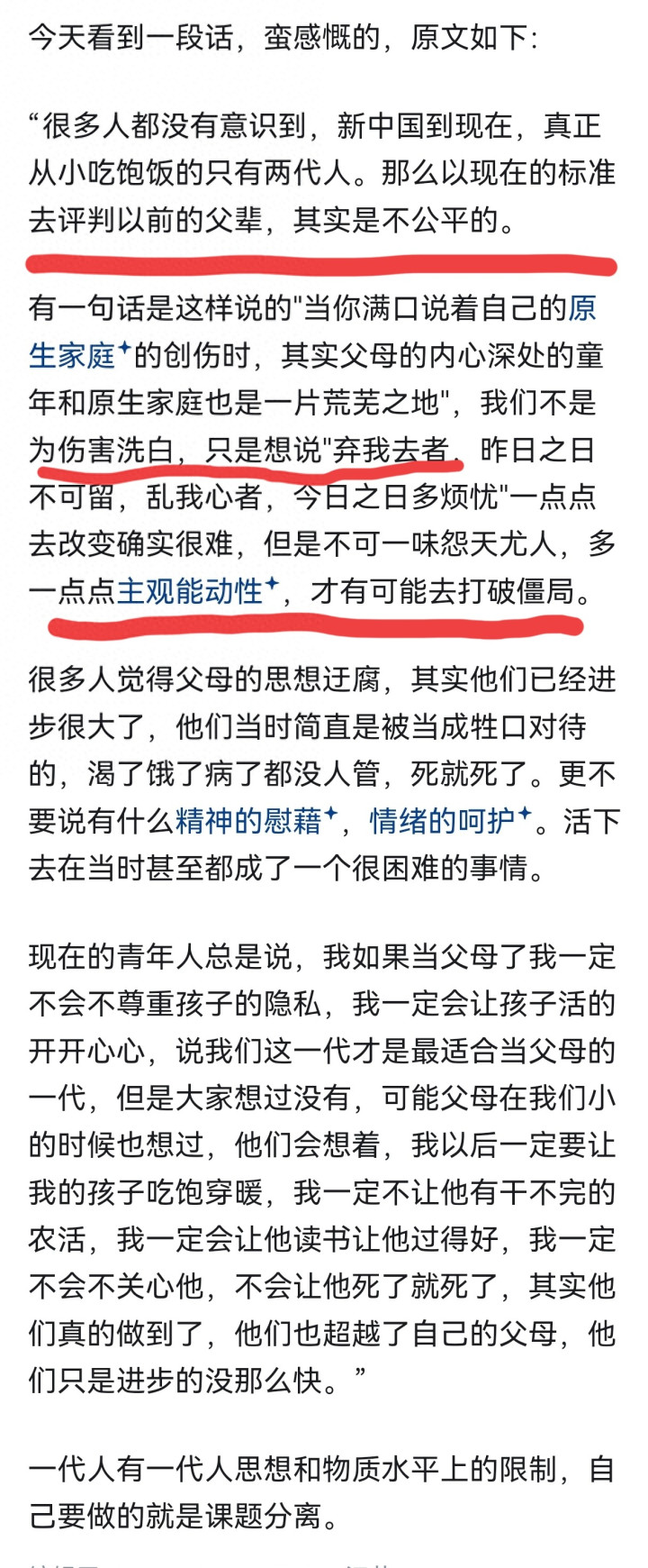 诚然我也被家庭伤害过,然则我方当了父母以后才合计,我的父母仍是在他的才能领域内给了我最佳的了,那些他没能责罚的问题换作是我,去阅历他的童年他的原生家庭,随机率还不一定作念的比他们好。