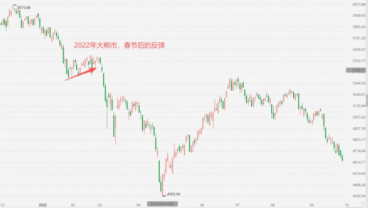 包括2022年,全场暴跌20%以上的大熊市,春节后亦然有一波小幅高涨企稳,具体见下图。