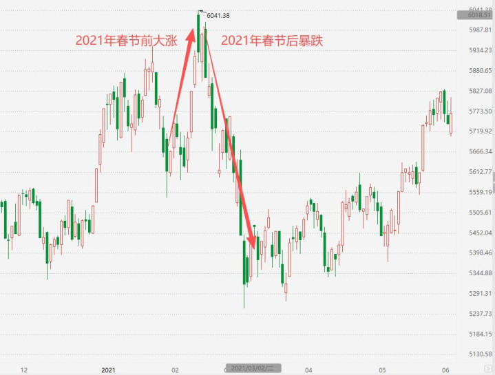 畴昔10年,独一的例外是2021年。春节后反而是暴跌的。